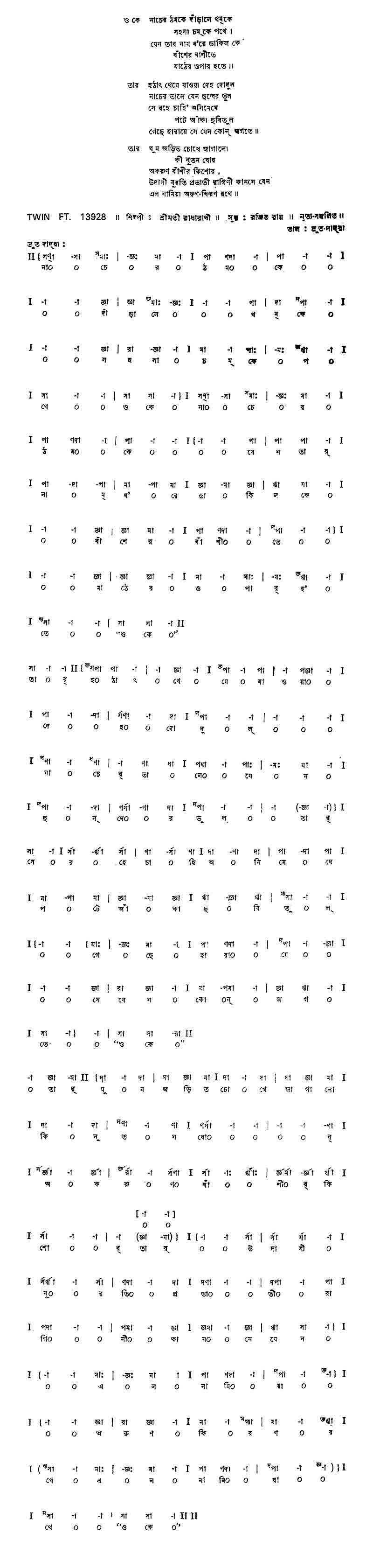 ও কে	নাচের ঠমকে দাঁড়ালো থমকে সহসা চমকে পথে
