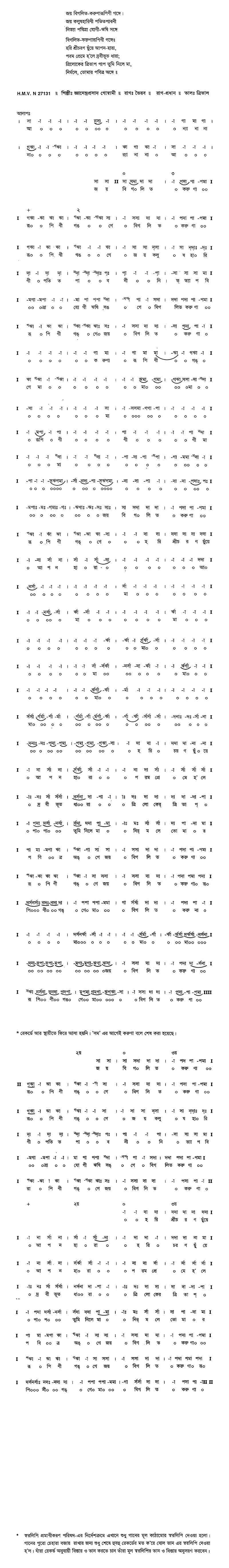নিত্যা পবিত্রা যোগী-ঋষি সঙ্গে॥