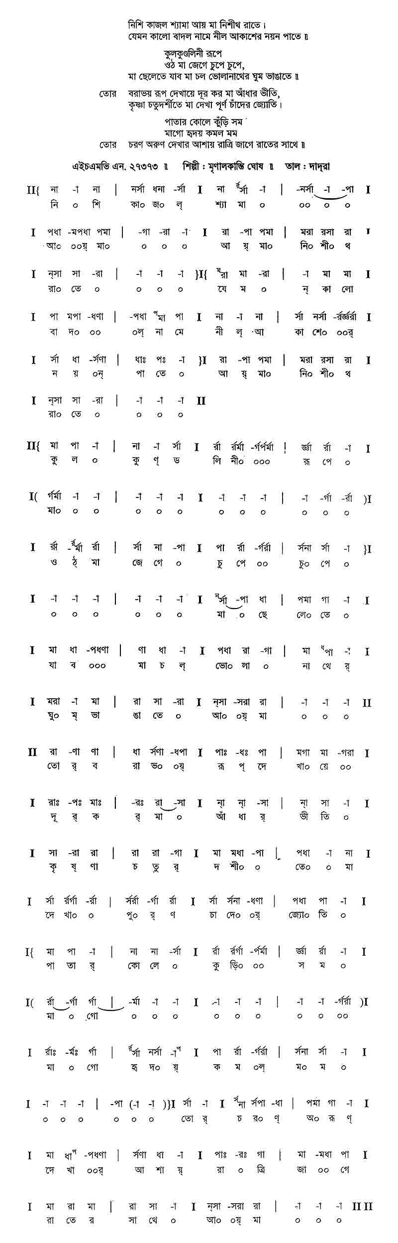 নিশি কাজল শ্যামা আয় মা নিশীথ রাতে।