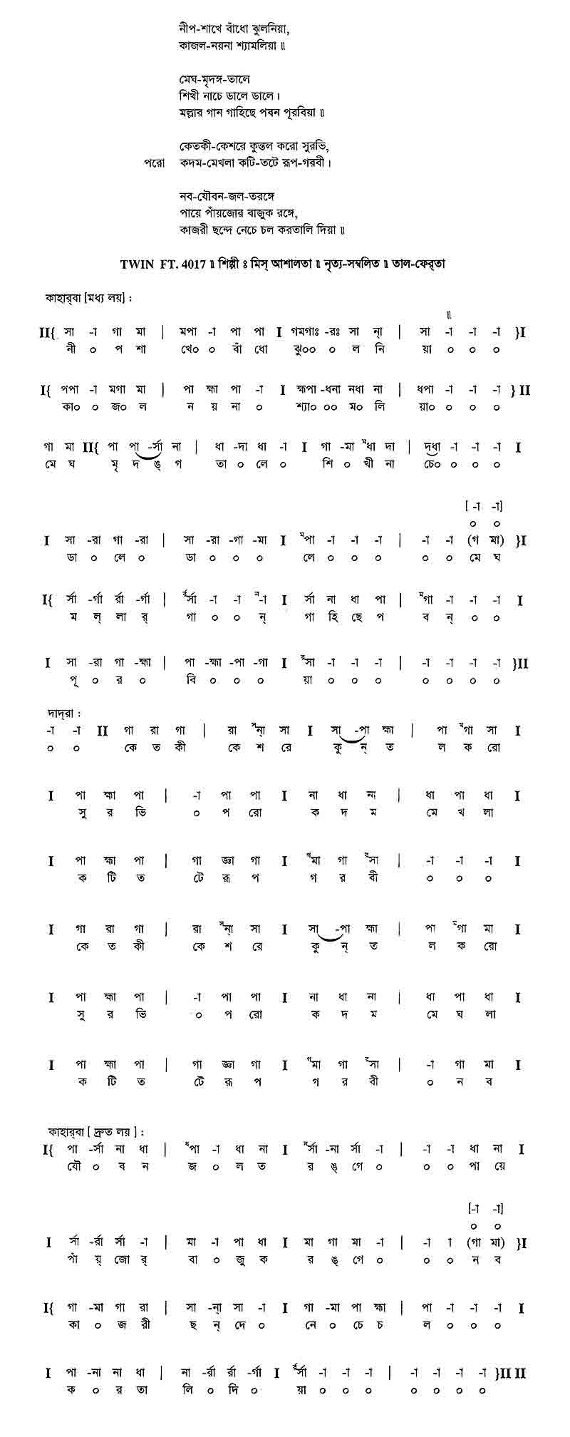 কাজরি ছন্দে নেচে চল করতালি দিয়া॥