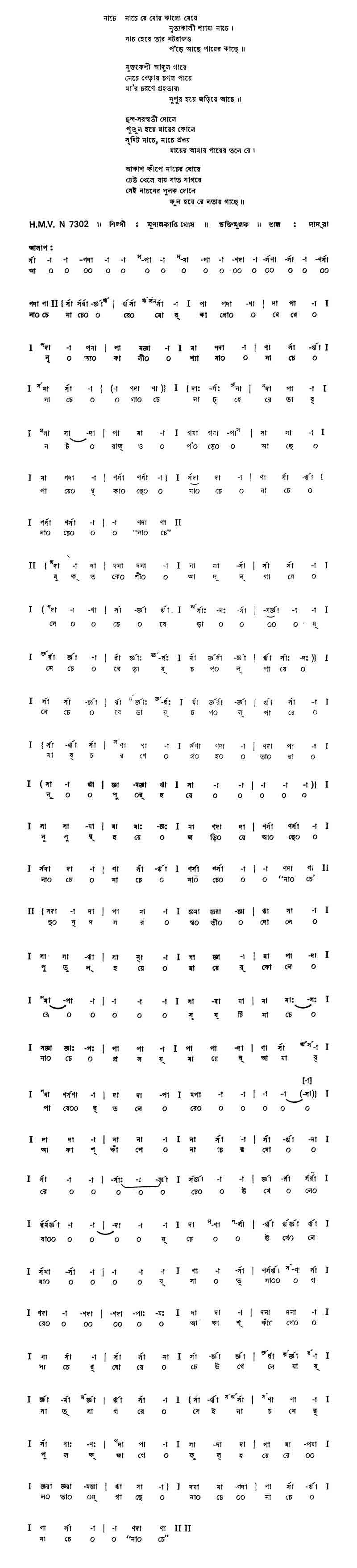 নাচে	নাচে রে মোর কালো মেয়ে নৃত্যকালী শ্যামা নাচে।