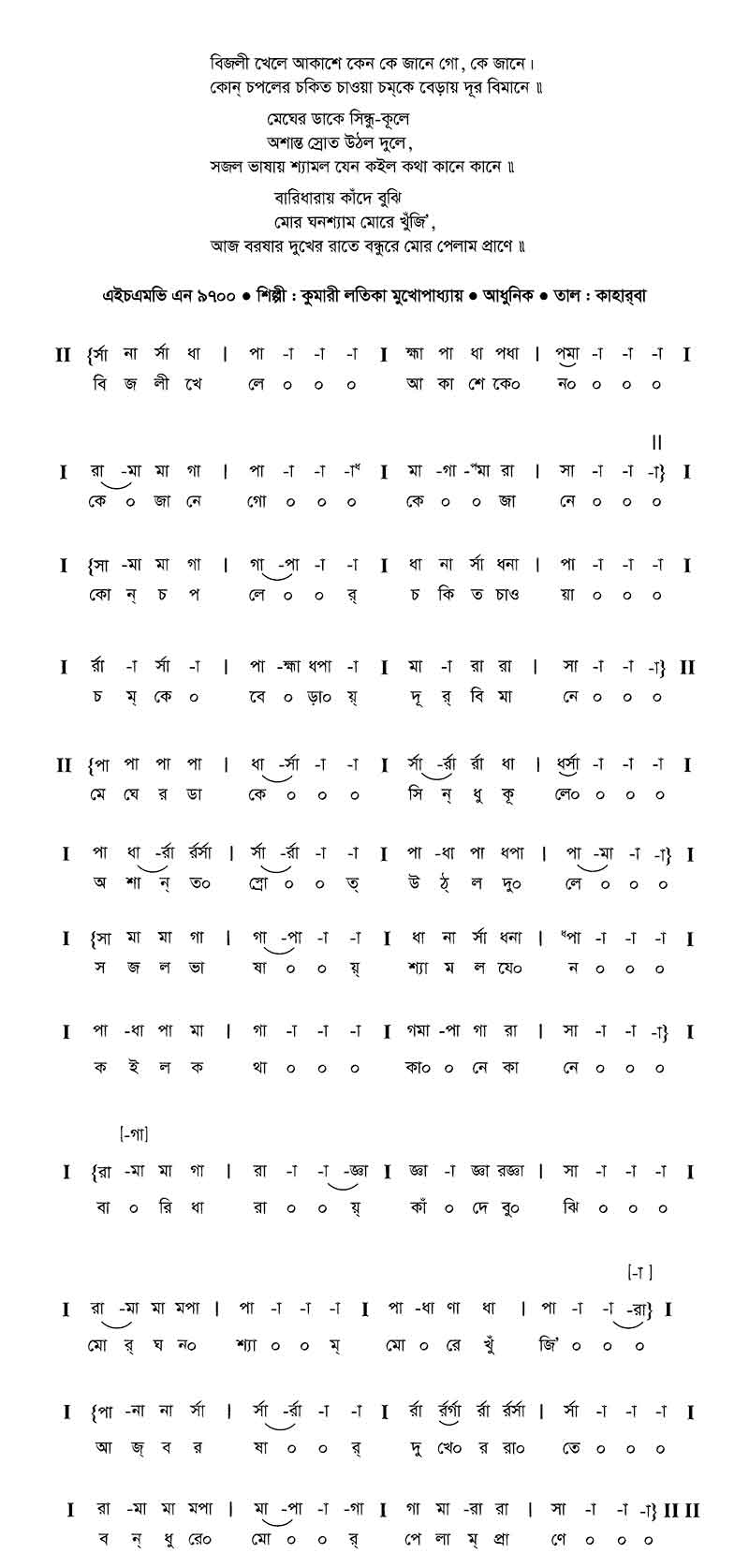 বিজলি খেলে আকাশে কেন — কে জানে গো কে জানে।