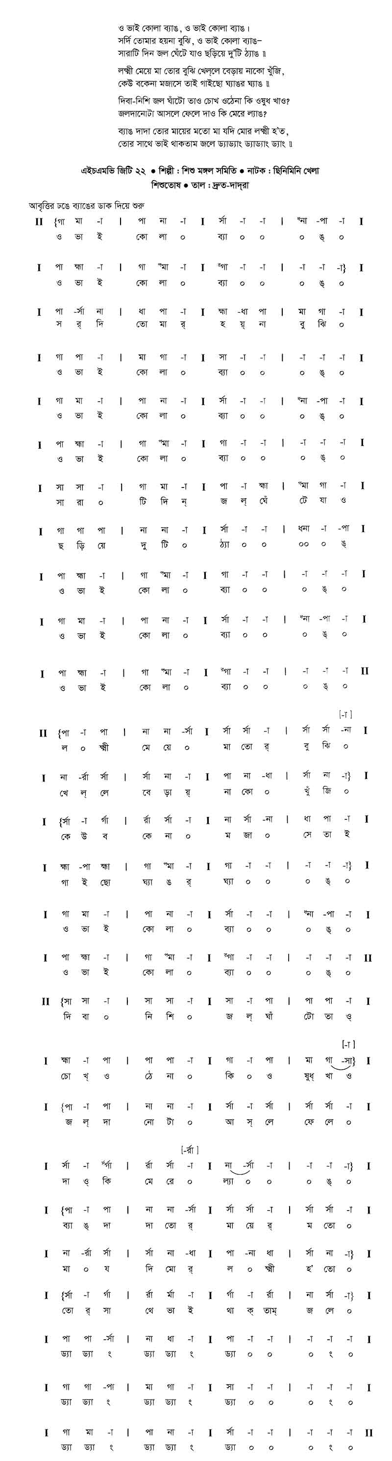ও ভাই কোলা-ব্যাঙ, ও ভাই কোলাব্যাঙ।