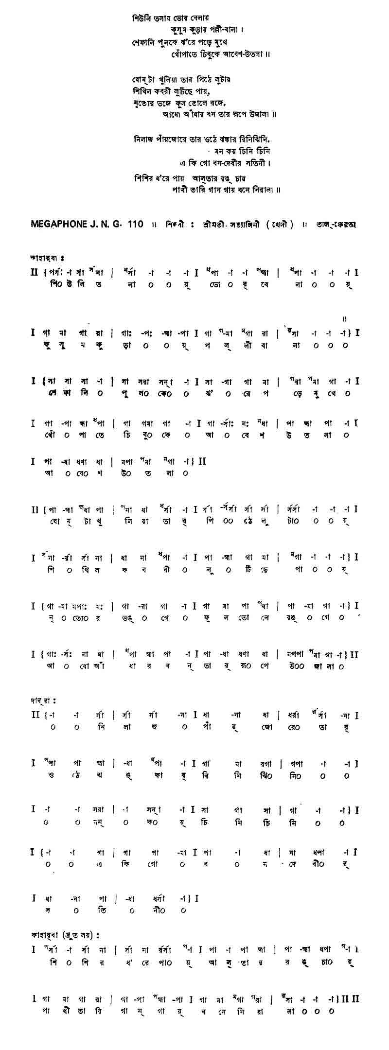 স্ত্রী 	: 	পুবের তপন সম রাঙাও জীবন মম তোমার কিরণ ধারে।।