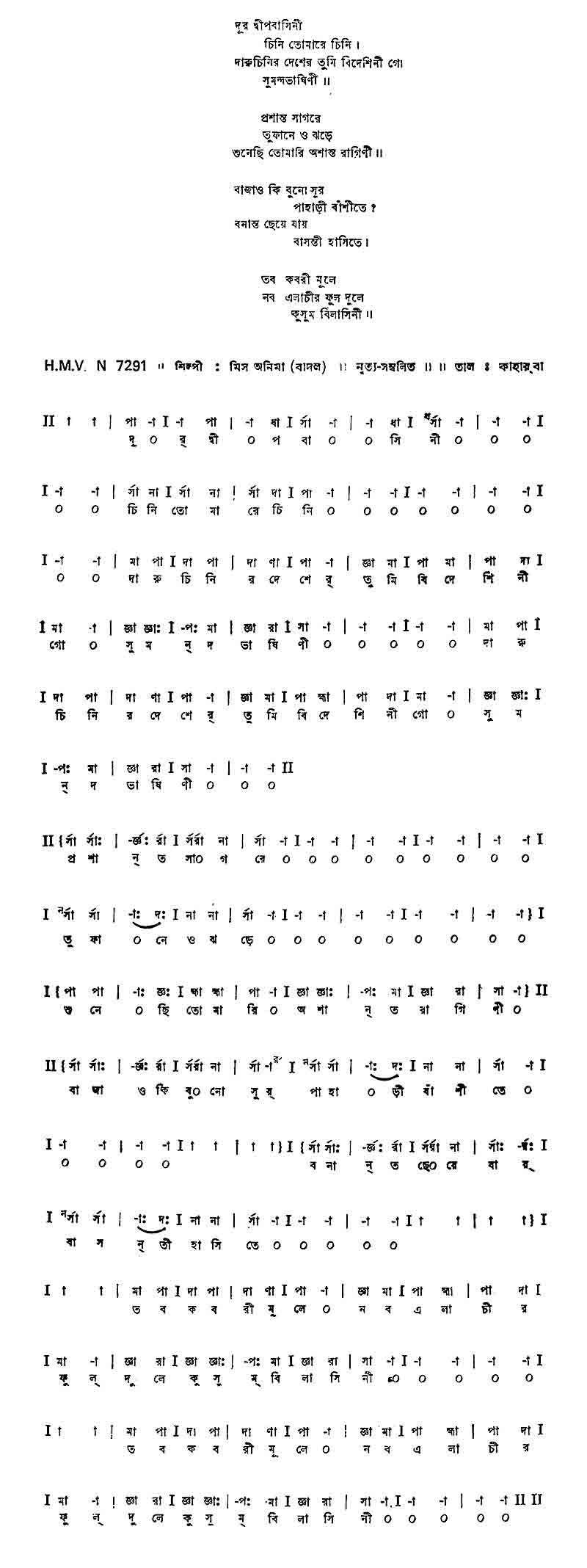 দূর দ্বীপ–বাসিনী, চিনি তোমারে চিনি।