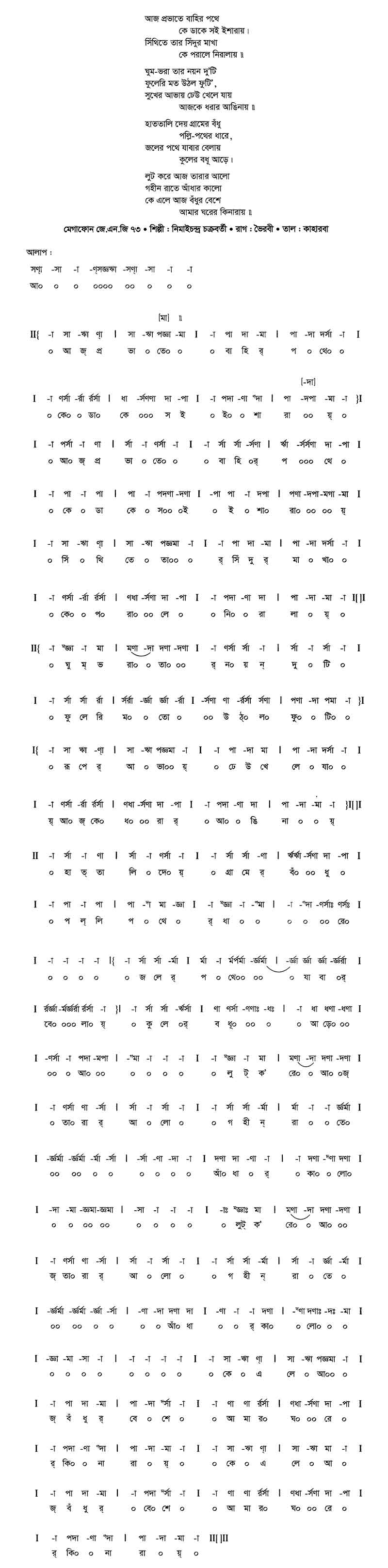 আজ প্রভাতে বাহির পথে কে ডাকে কোন্‌ (সই) ইশারায়।