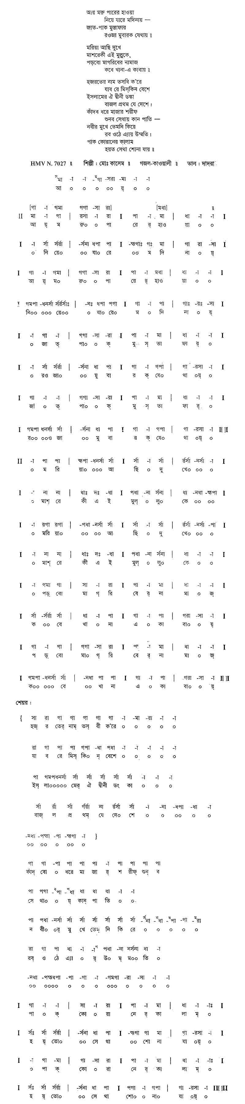 আয় মরু পারের হাওয়া নিয়ে যা রে মদিনায় —
