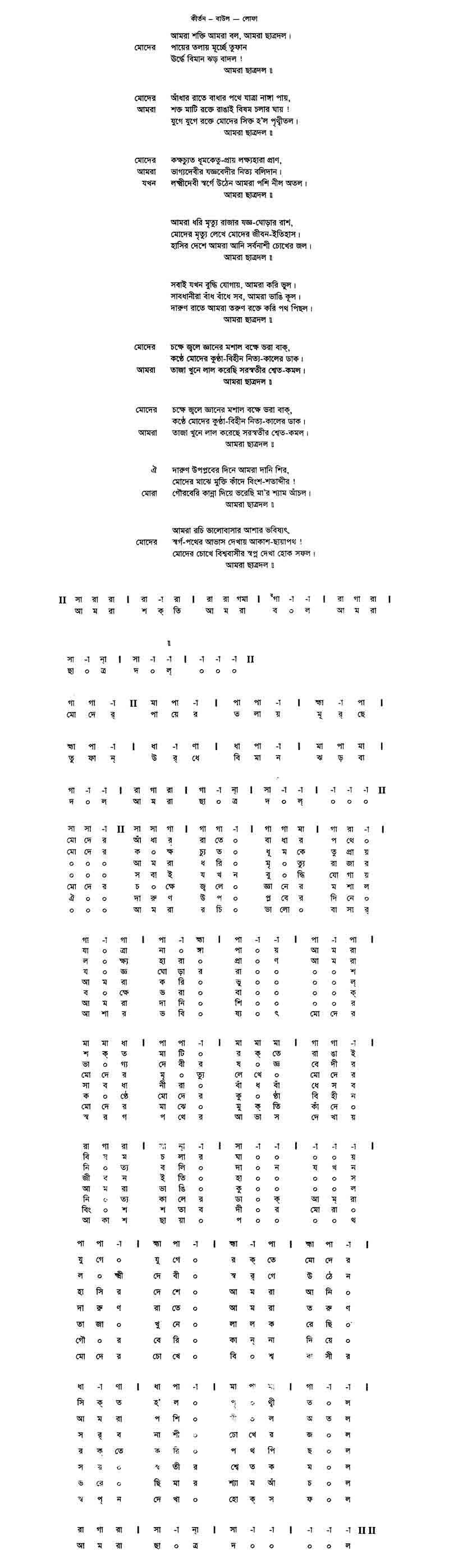 মোরা		গৌরবেরি কান্না দিয়ে ভরেছি মা’র শ্যাম আঁচল।