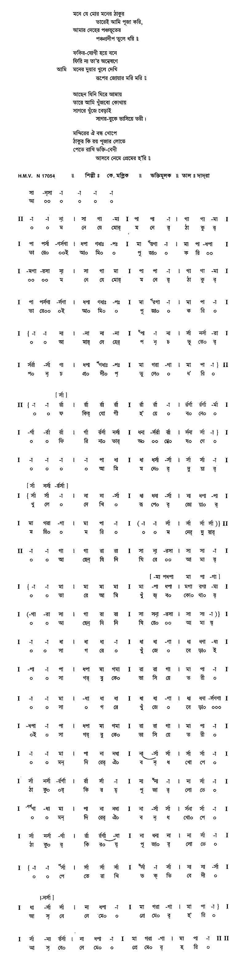 মনে যে মোর মনের ঠাকুর তারেই আমি পূজা করি,
