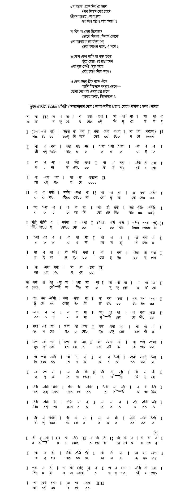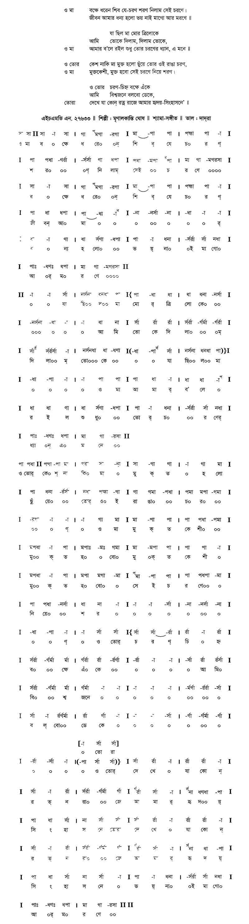 ও মা	বক্ষে ধরেন শিব যে চরণ শরণ নিলাম সেই চরণে