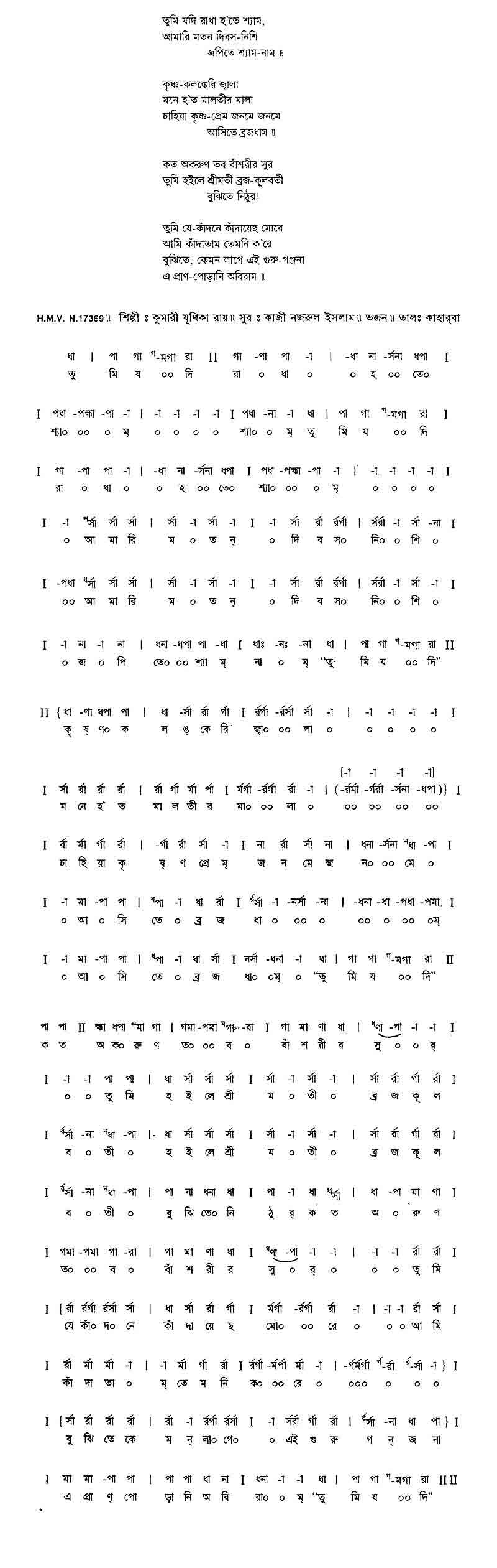 কত অকরুণ তব বাঁশরির সুর