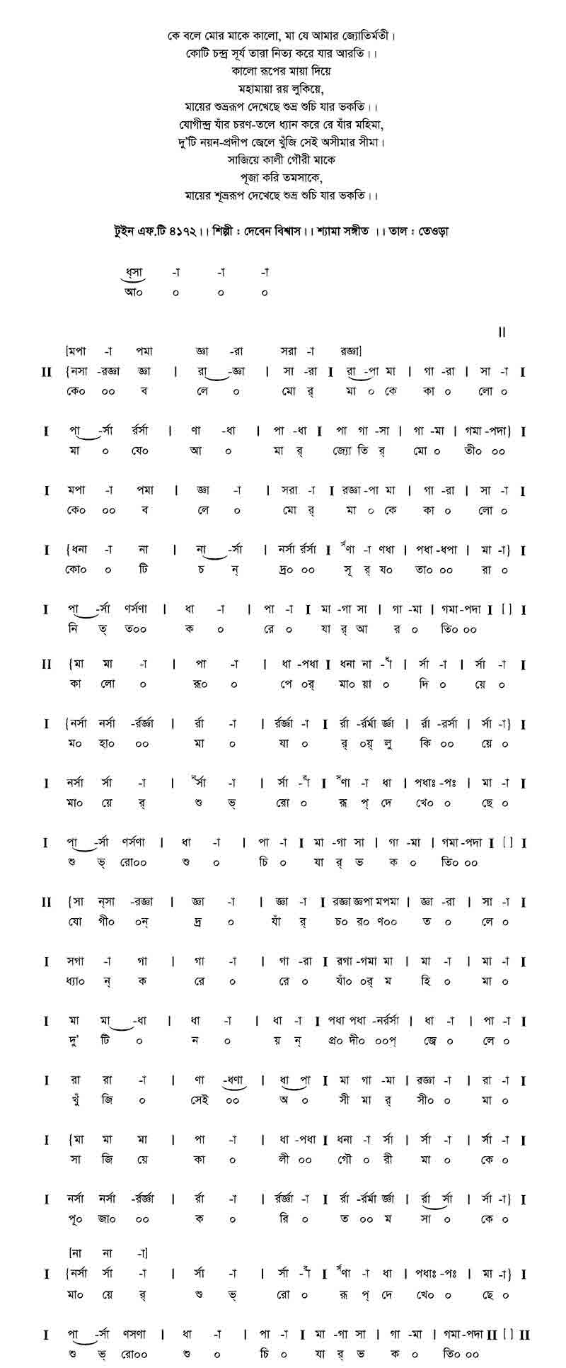 কে বলে মোর মাকে কালো, মা যে আমার জ্যোতির্মতী।