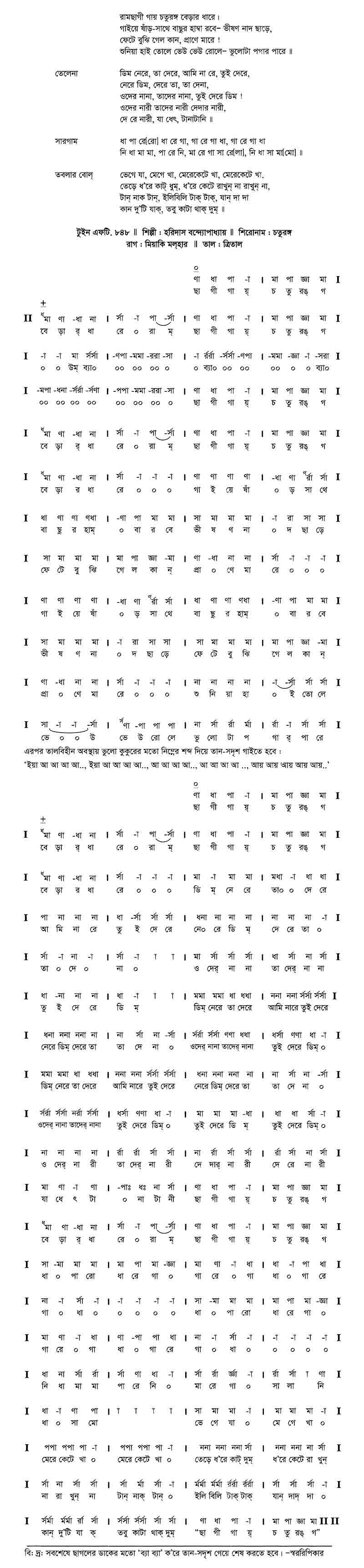 তবলার বোল: 	ভেগে যা, মেগে খা, মেরে কেটে খা, মেরে কেটে খা’