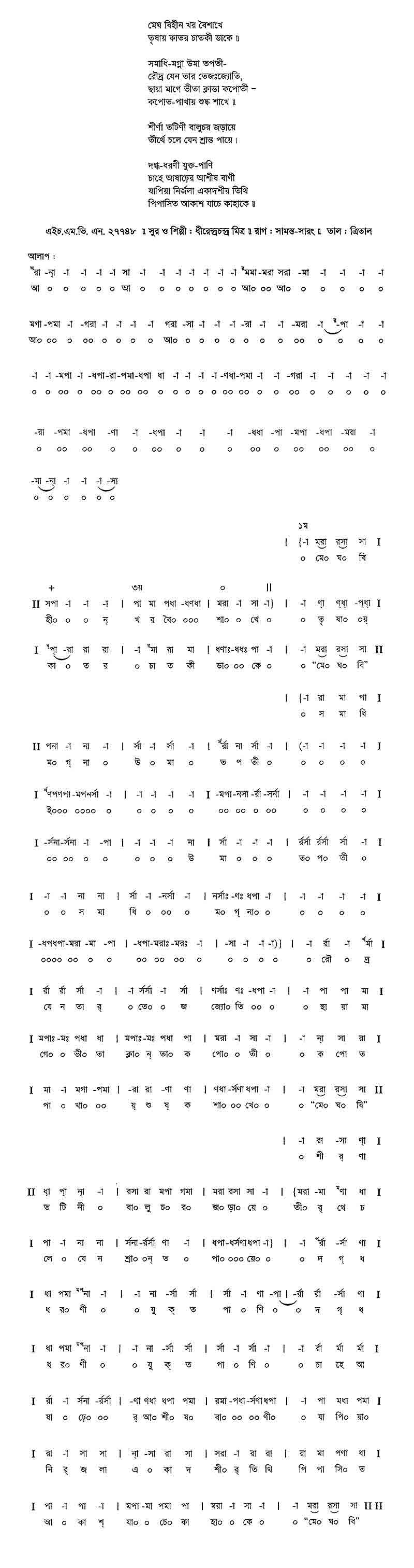 আমার	কণ্ঠের সুর অশ্রুভারে
