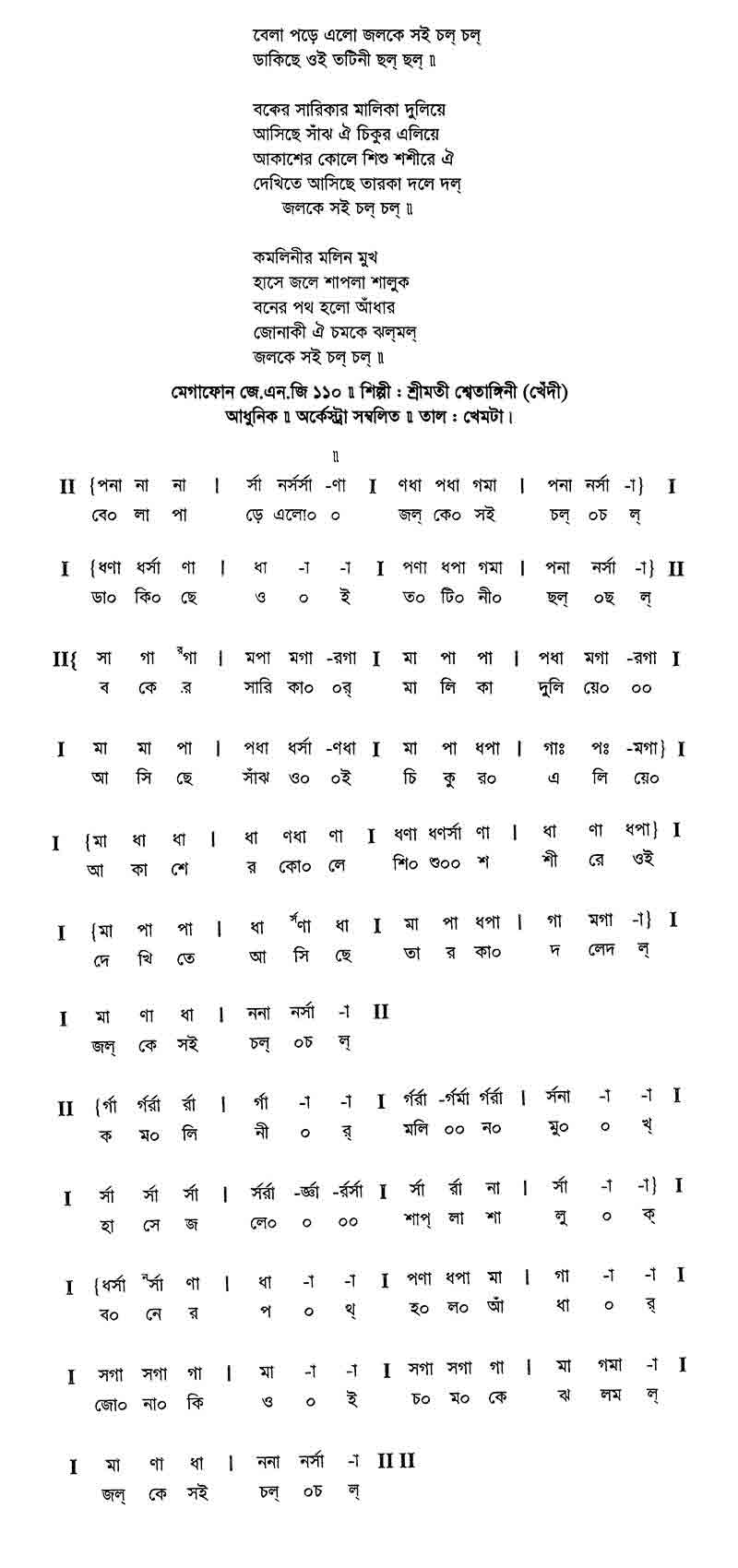 বেলা প’ড়ে এলো জল্‌কে সই চল্ চল্