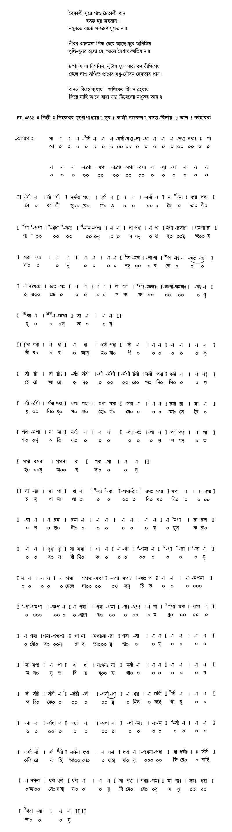 বৈকালী সুরে গাও চৈতালি গান, বসন্ত হয় অবসান।