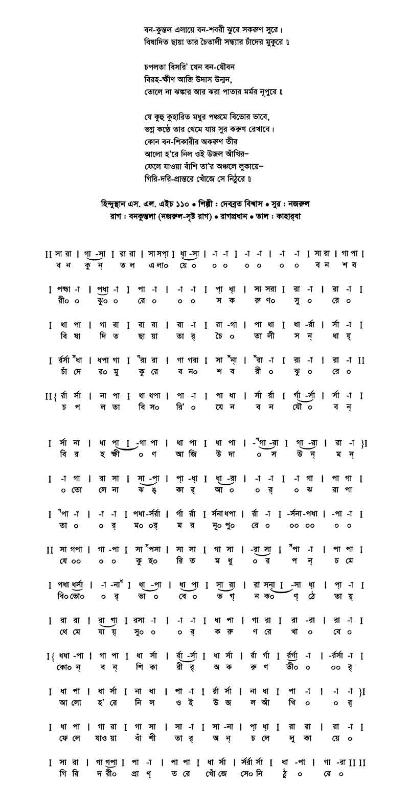 বন-কুন্তল এলায়ে বন শবরী ঝুরে সকরুণ সুরে।
