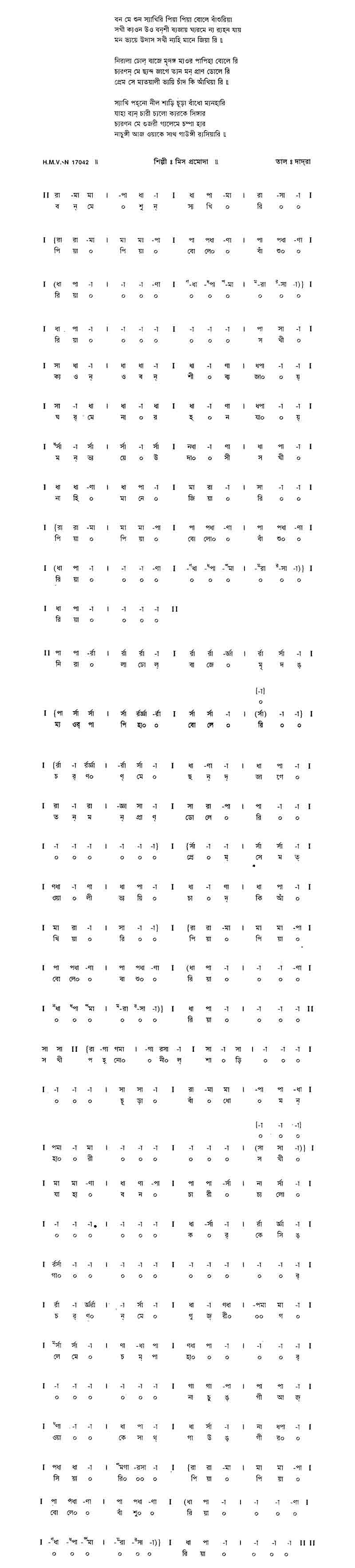 ব্যনমে শুন স্যখিরি পিয়া পিয়া বোলে বাঁশুরিয়া।