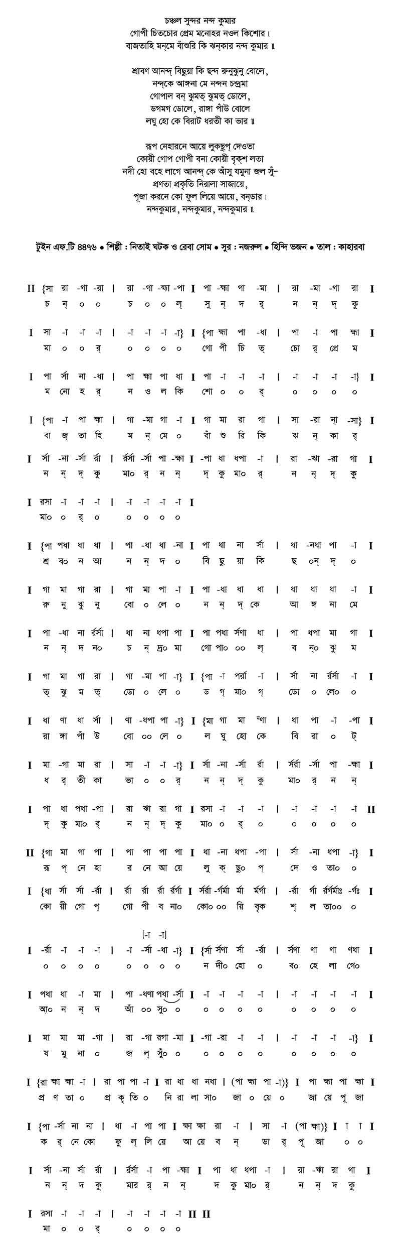 নন্দ্‌কে আঙ্গ্‌নামে নন্দন চন্দ্রমা গোপাল বন্‌ ঝুমত্‌ ঝুমত্‌ ডোলে,