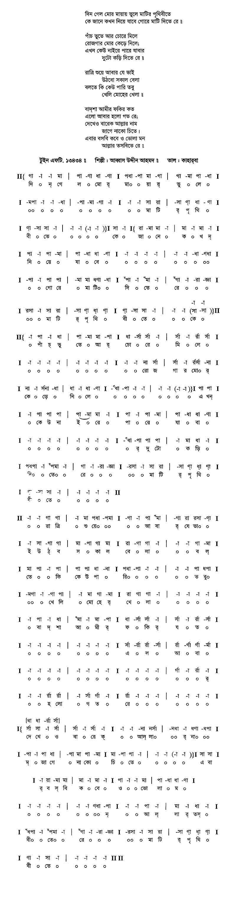 দিন গেল মোর মায়ায় ভুলে মাটির পৃথিবীতে।