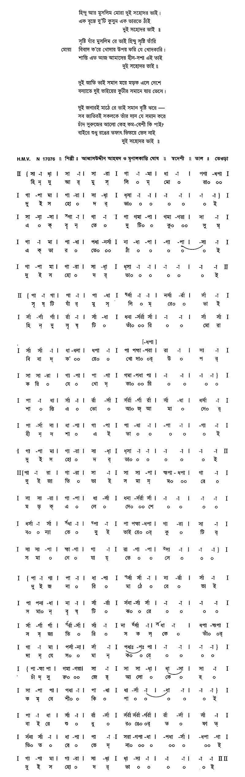 হিন্দু আর মুসলিম মোরা দুই সহোদর ভাই।