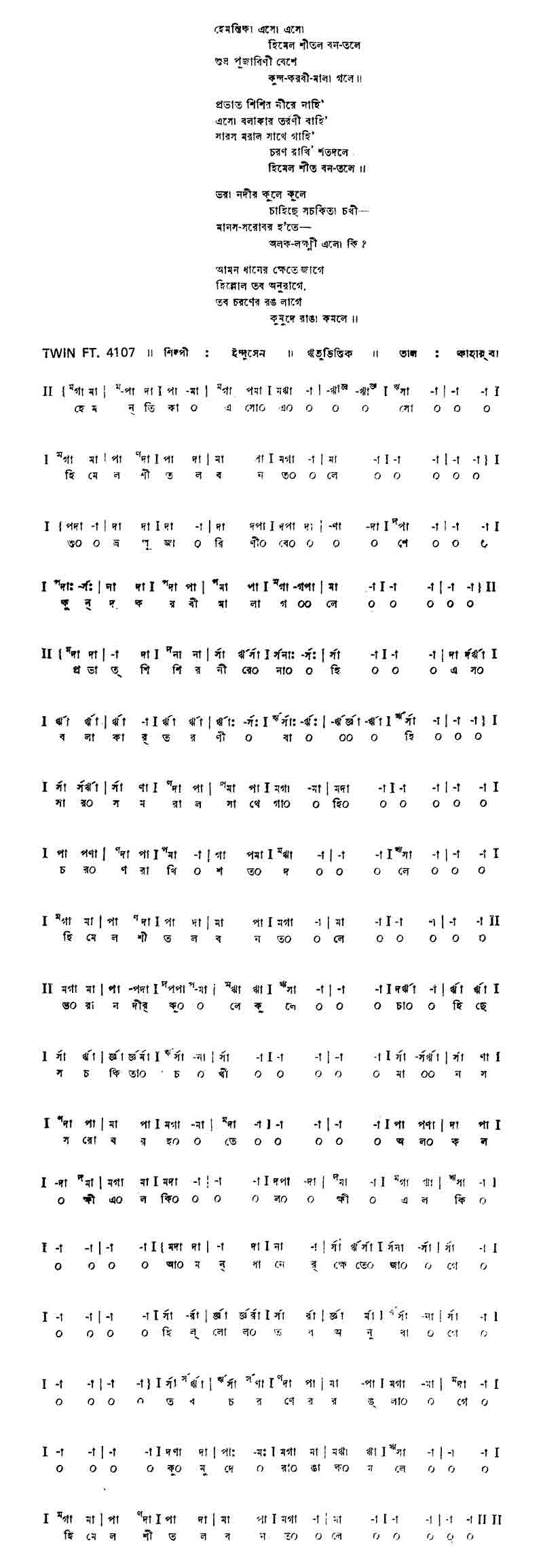 হেমন্তিকা এসো এসো হিমেল শীতল বন-তলে