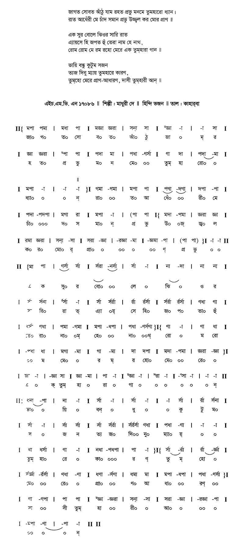 জাগত সোওত আঁঠু জাম রাহত প্রভু মনমে তুমহারে ধ্যান।