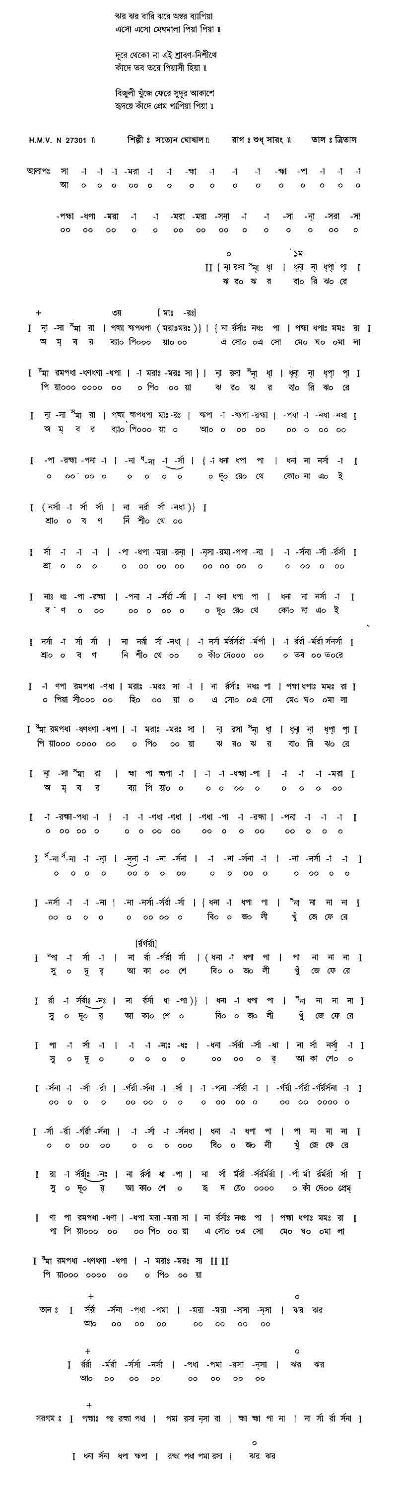 ঝর ঝর বারি ঝরে অম্বর ব্যাপিয়া