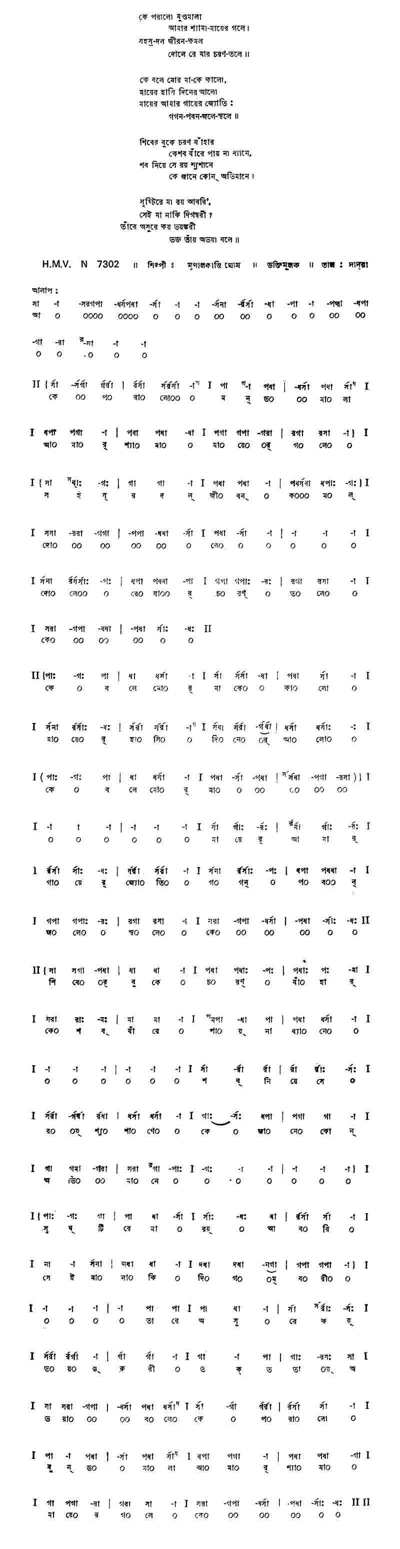 কে পরালো মুণ্ডমালা আমার শ্যামা-মায়ের গলে।