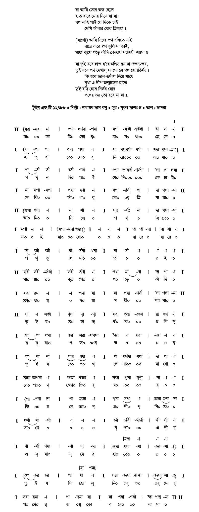 মা! আমি তোর অন্ধ ছেলে হাত ধ’রে মোর নিয়ে যা মা।