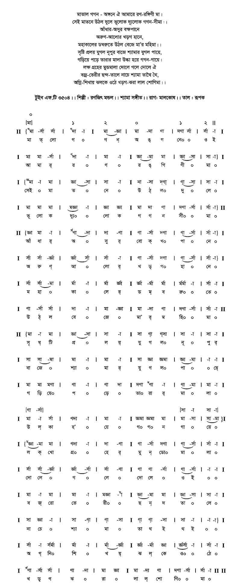 লক্ষ গ্রহের মুন্ডমালা দোলে গলে দোলে ঐ