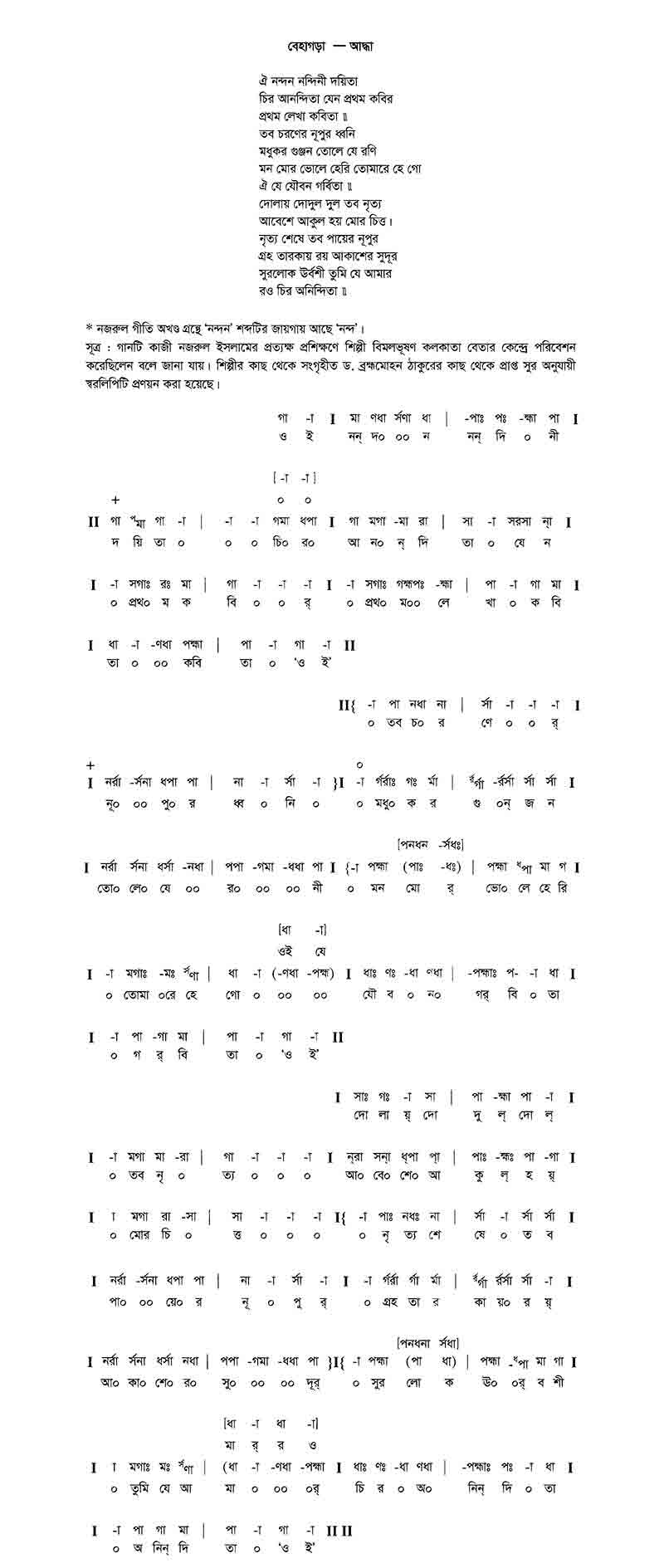 ঐ নন্দন নন্দিনী দয়িতা, চির-আনন্দিতা।