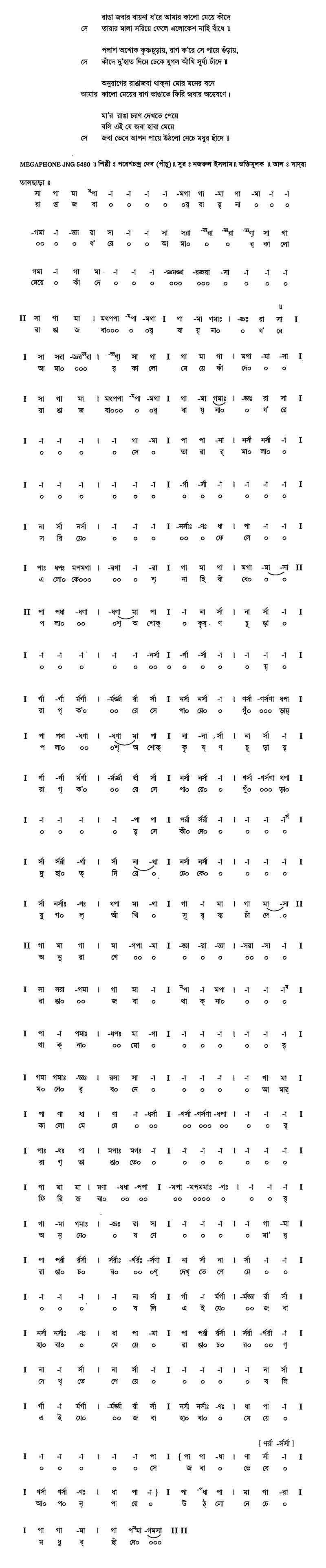 (সে)		জবা ভেবে আপন পায়ে উঠলো নেচে মধুর ছাঁদে॥