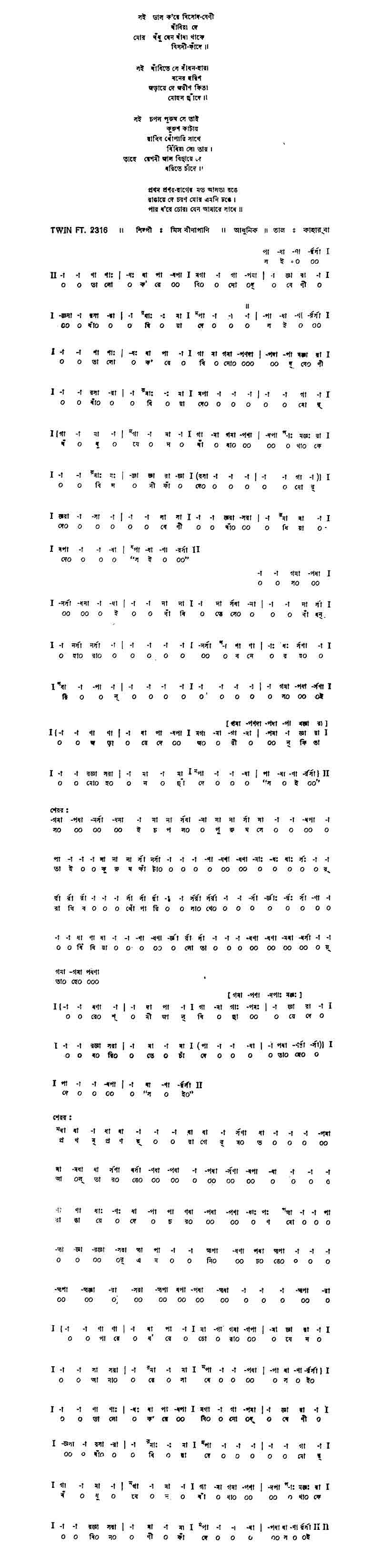সই		বাঁধিতে সে বাঁধন–হারা বনের হরিণ