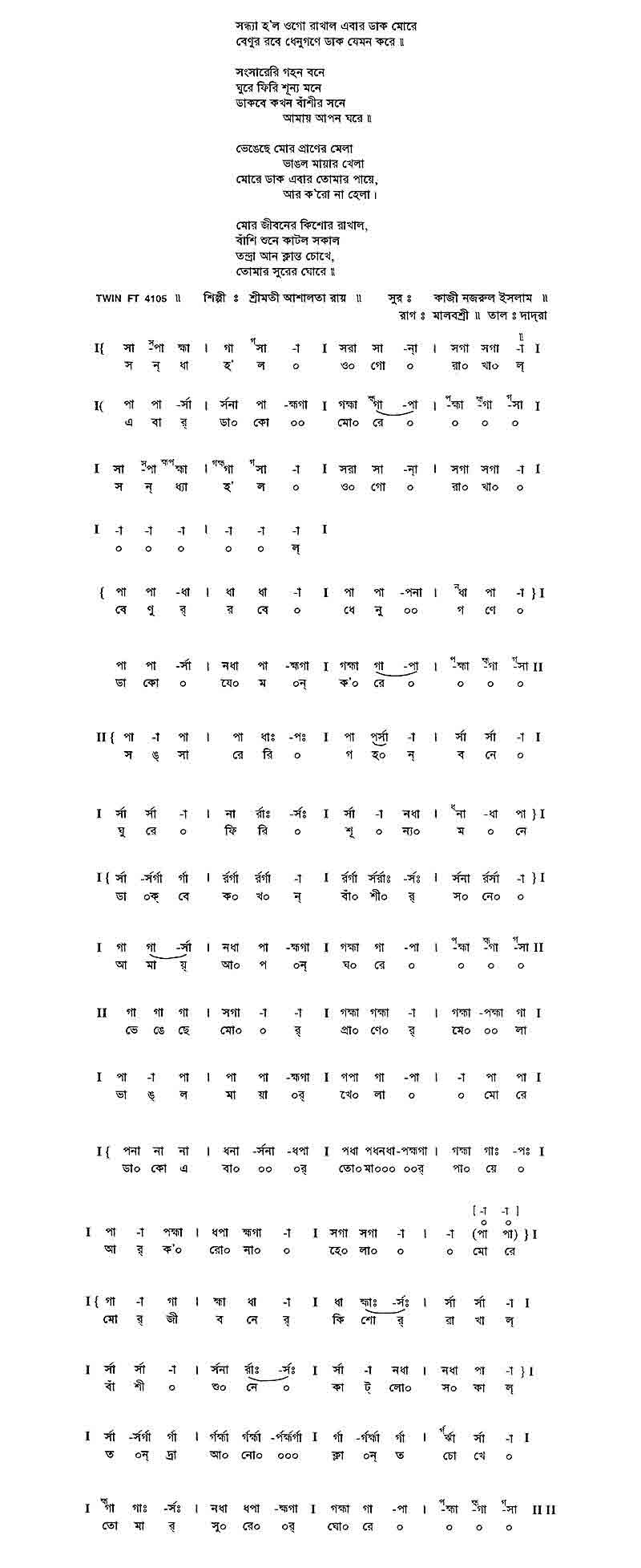 সন্ধ্যা হল ওগো রাখাল এবার ডাক মোরে