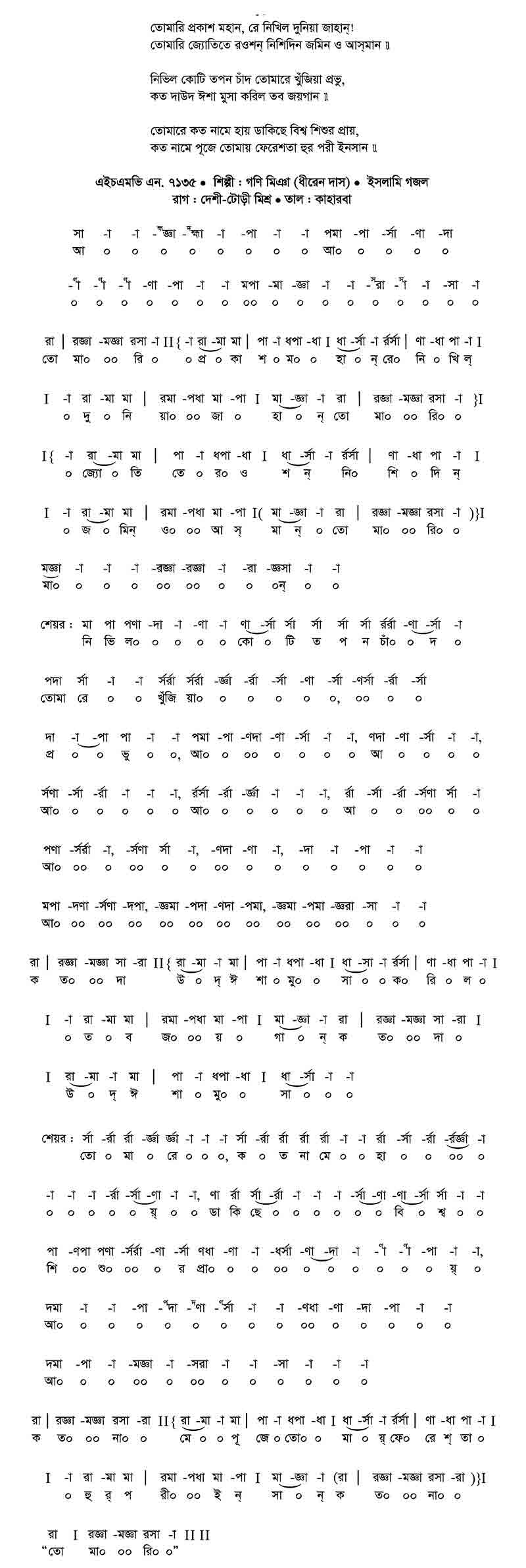 তোমারি প্রকাশ মহান, রে নিখিল দুনিয়া জাহান্!