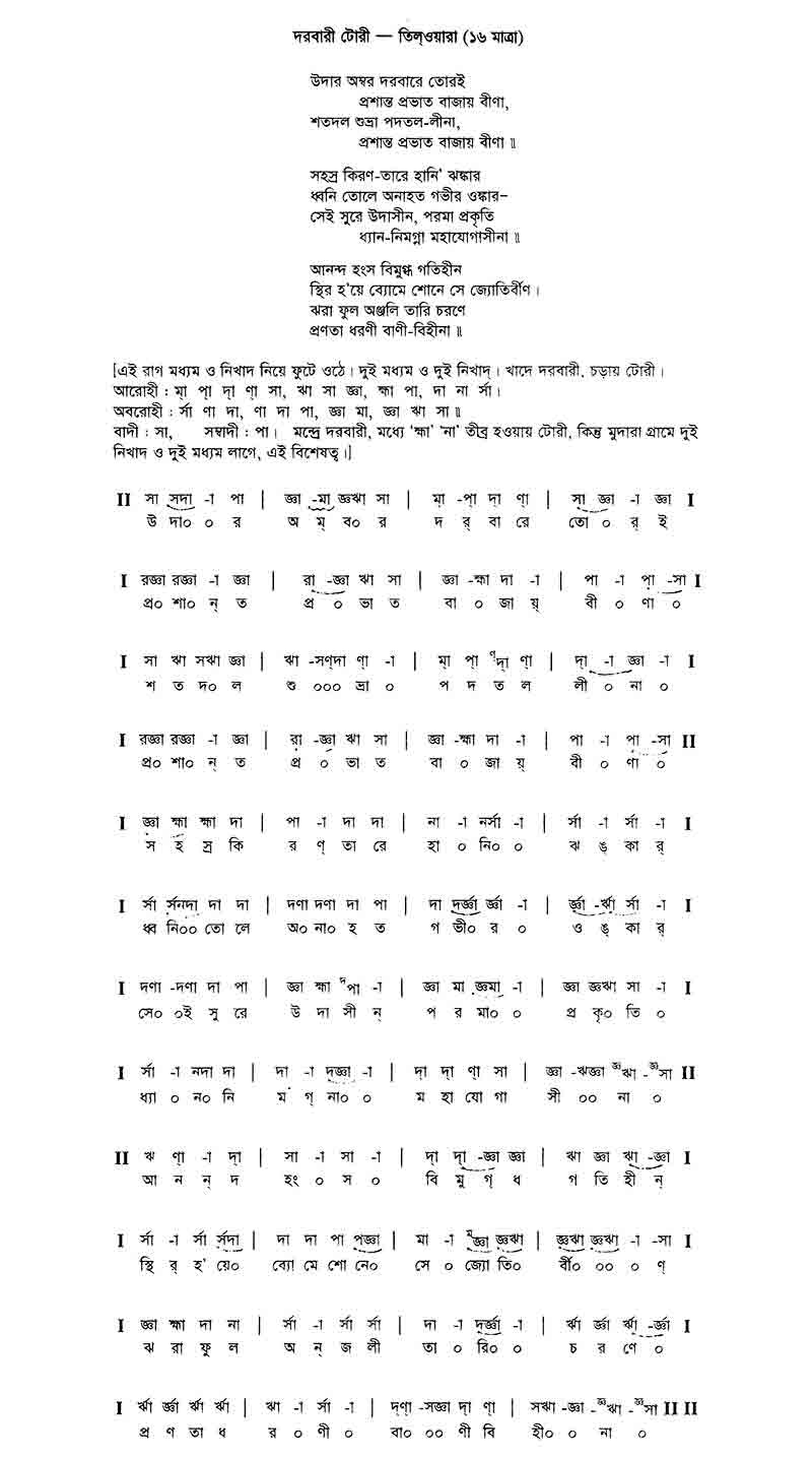 উদার অম্বর দরবারে তোরই প্রশান্ত প্রভাত বাজায় বীণা।