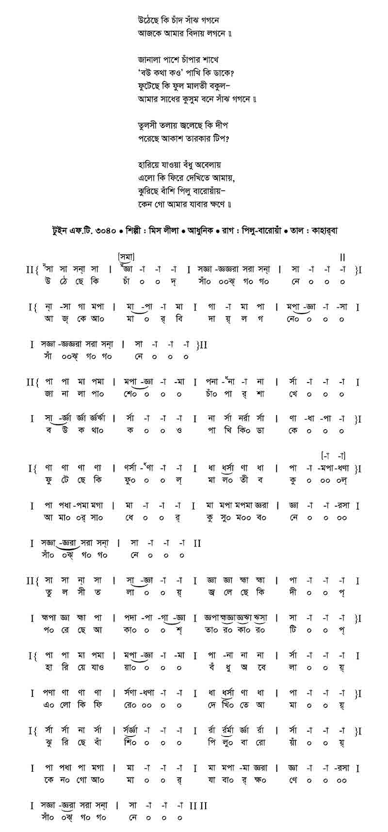 ঝুরিছে বাঁশি পিলু বারোয়াঁয় —